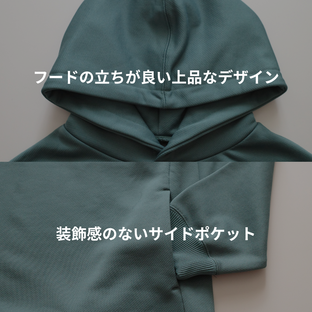 子供っぽくなりがちなパーカーですが、素材やシルエットを工夫することで、大人も着やすいきれいめカジュアルなアイテムになりました!ラフすぎるのが苦手な方にも一度お試し頂きたいです!