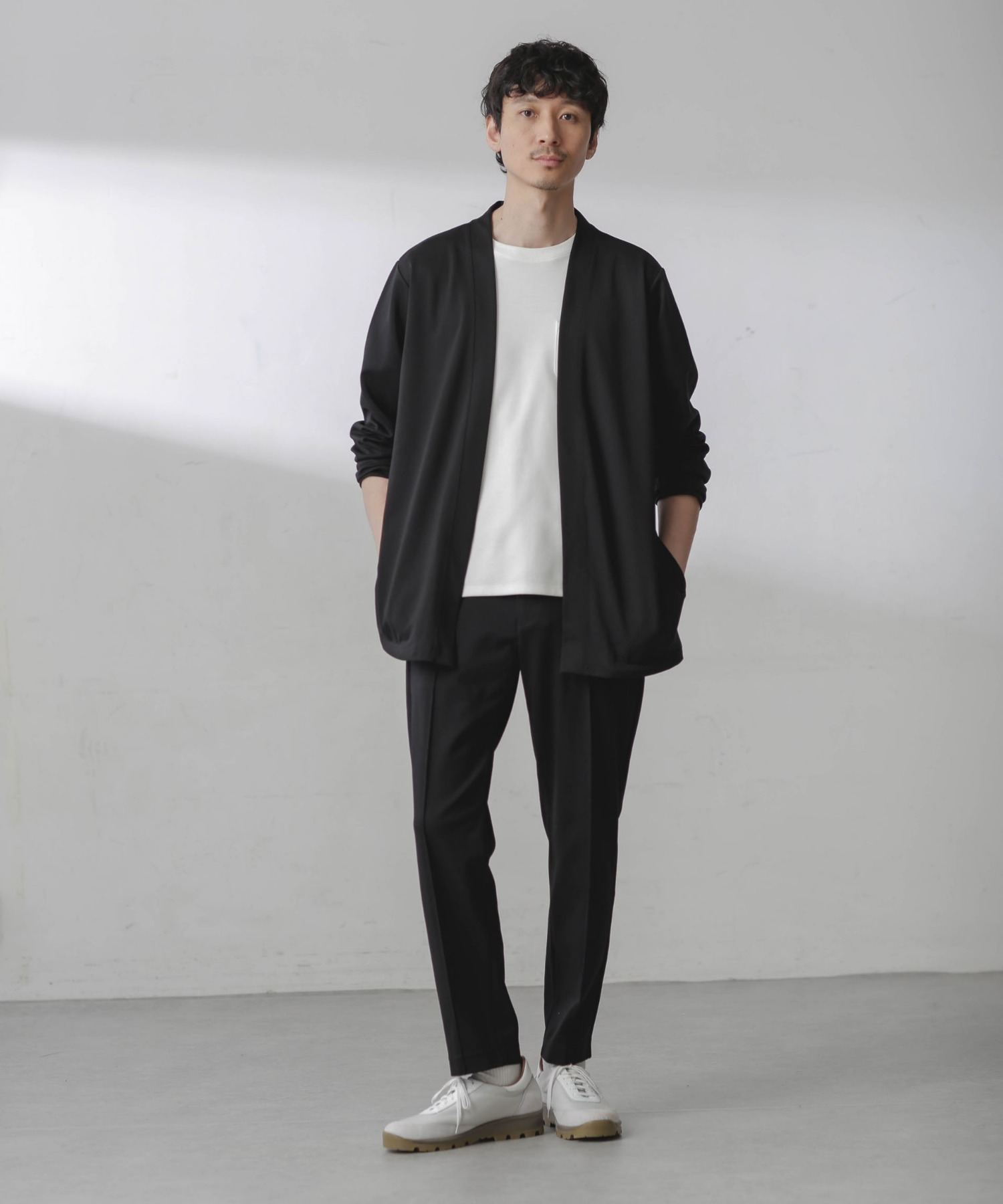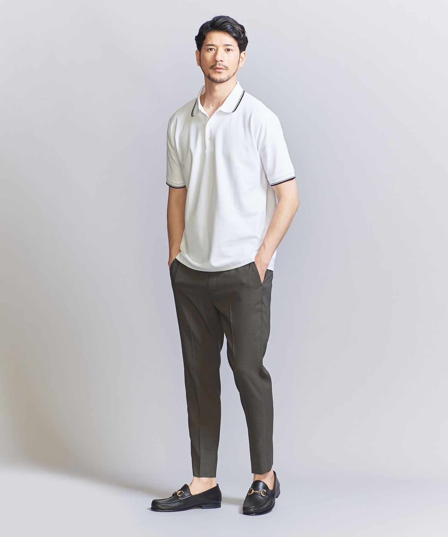 トップスにジャケットやシャツといったドレス感のあるアイテムを着る場合は、ボトムにカジュアル感のあるアイテムを選ぶのがおすすめ。逆に、テーパードパンツやスラックスといったきれいめボトムには、Tシャツやポロシャツといったラフ感の残るトップスを合わせると程よくカジュアルダウンできます。