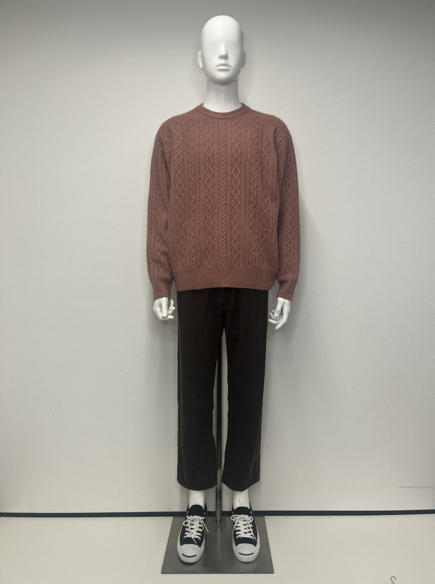 ・ニット類: のっぺりした薄手のニットではなく、表面に「ケーブル」と呼ばれる縄目のような編み目や、「ワッフル」のようなデコボコした模様があるものを選んでみるのがおすすめです。この凹凸が、視覚的に体に厚みがあるように見せてくれます。