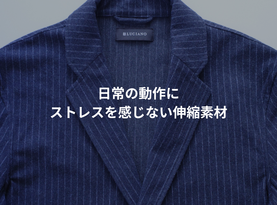 驚異的な伸縮性が特徴の「ワンダーシェイプ」生地を採用しました。身体の動きに合わせて360度伸縮するストレッチ性が効いた素材なので、日常の動作もストレスなく、ジャケットを着ているとは思えないほど快適に過ごせます。