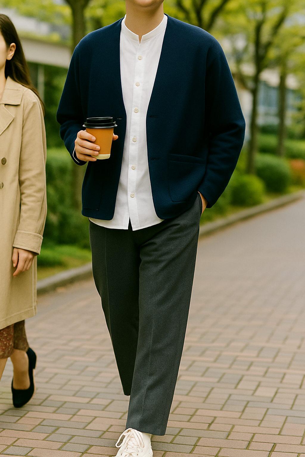 街で ノーカラージャケット × バンドカラーの方を見かけると、思わず心の中で「あ、なんか優しそうで清潔感あるな〜」って反応してつい目で追ってたりします。笑