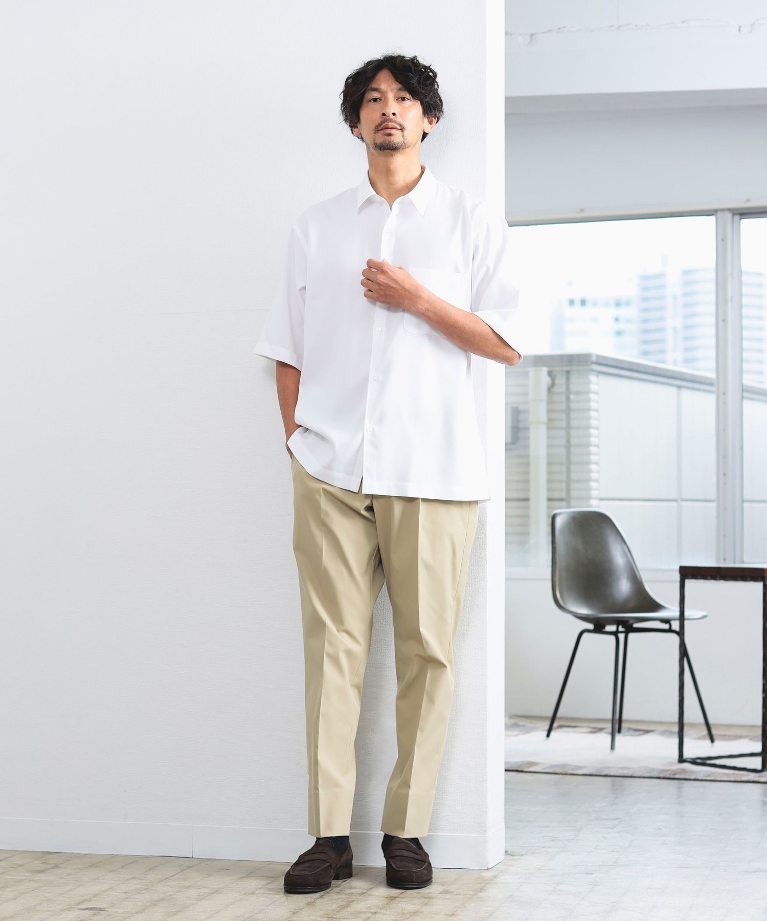 きちんと感をしっかり残したい場合は襟付きシャツ、程よくカジュアルダウンしたいときはポロシャツ、ラフな印象をプラスしたいときはTシャツなど、トップス次第で印象ががらりと変わるのが魅力。大人の夏コーデに欠かせないアイテムのひとつです。