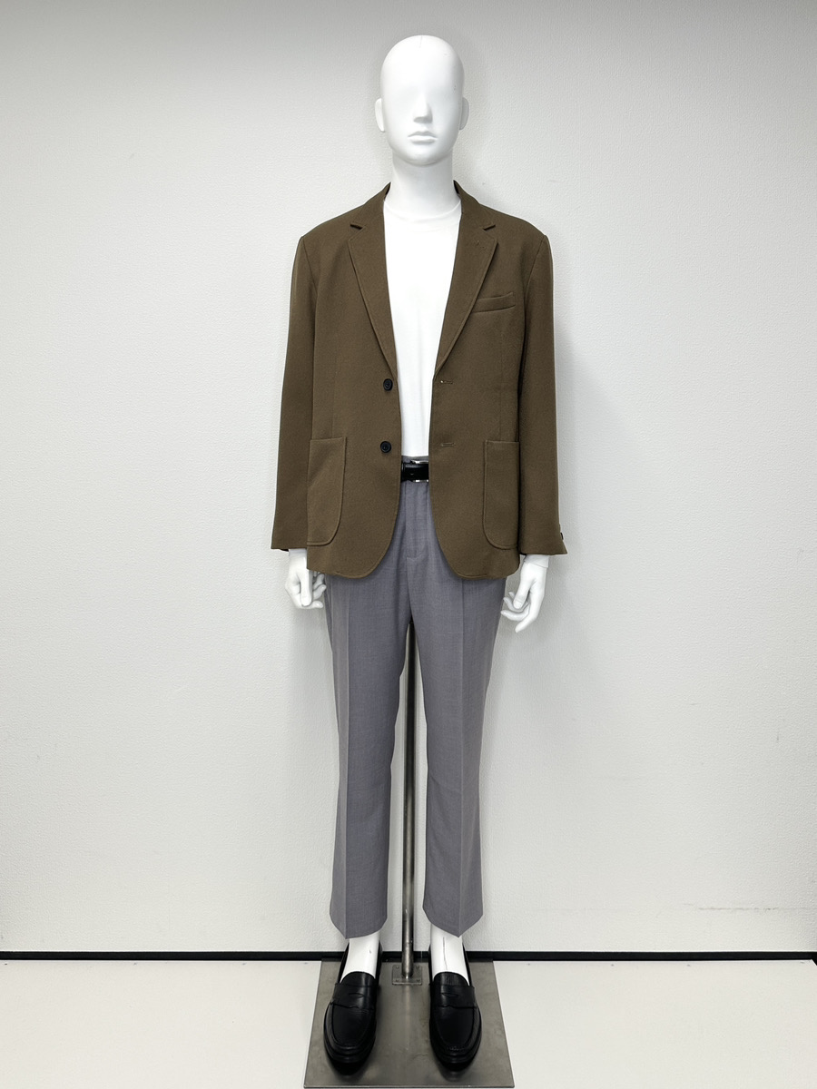 そこにブラウンのジャケットを羽織りに合わせます。