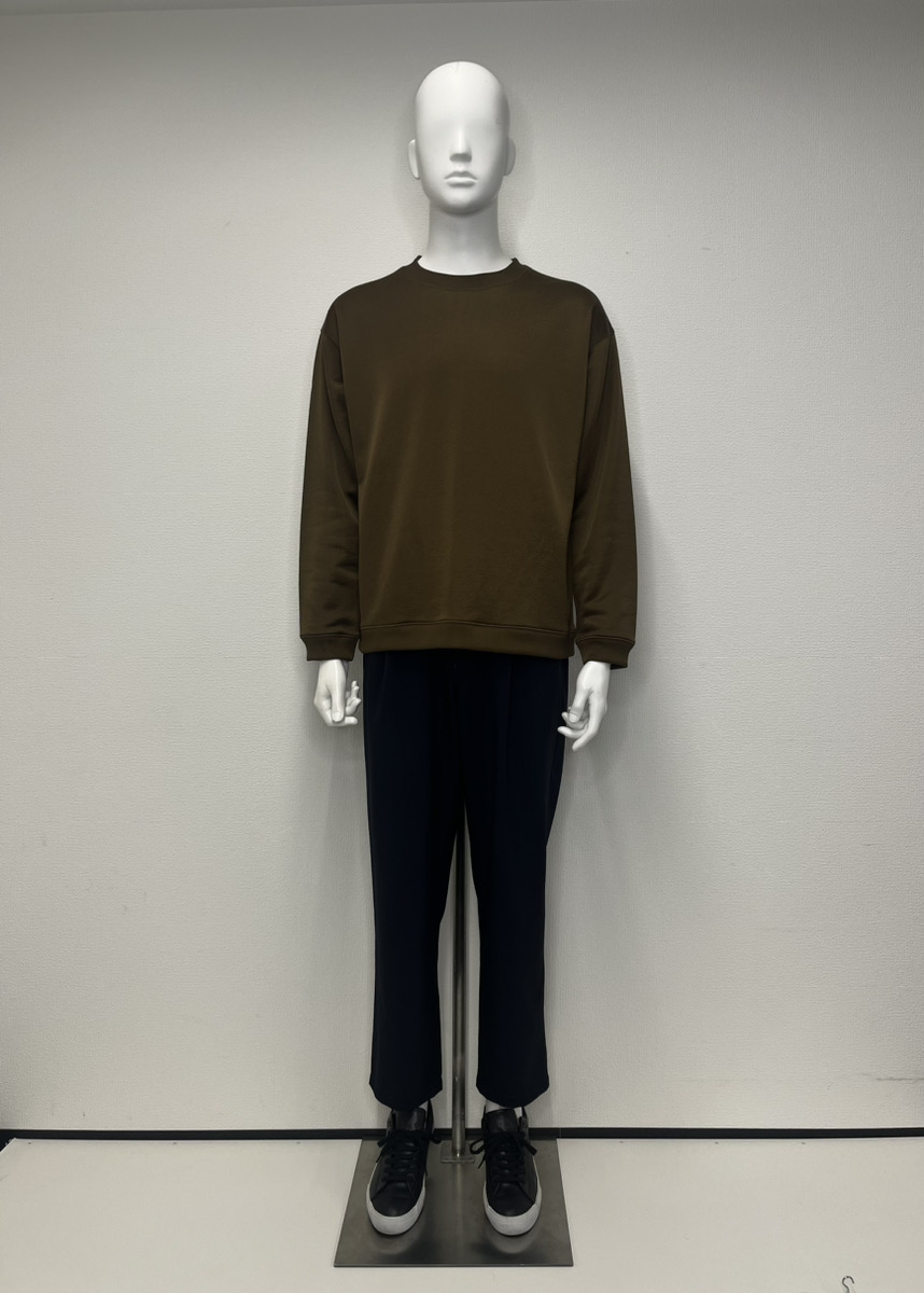 トップスは手持ちのトレーナーやカットソーでもOKですが、“素材感”が重要なポイントです。少しツヤやハリのある生地なら清潔感が出て、ラフなのにきちんと見えます。毛羽立ちやヨレが目立つものは避けましょう。