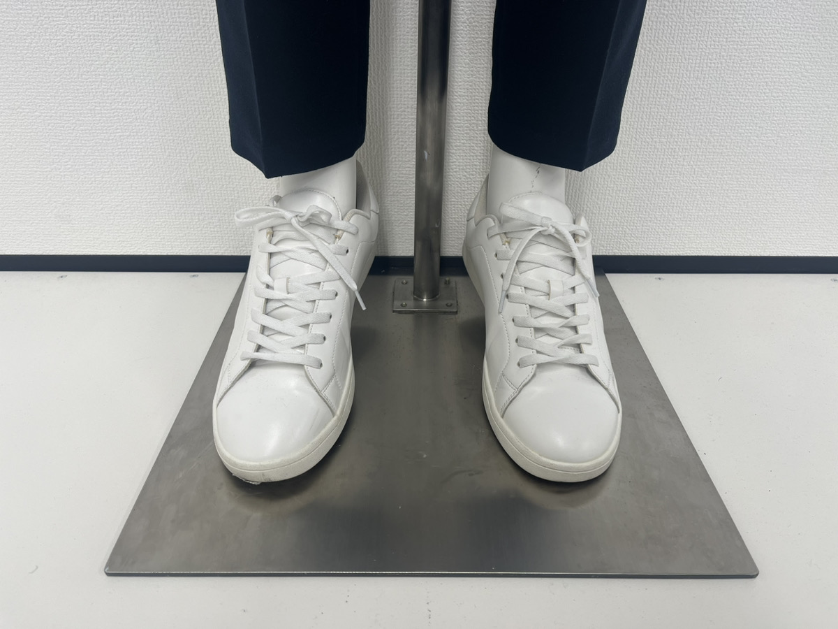 レザーシューズはスニーカーよりもきれいめ度が一定なので、上下どちらのパターン(上カジュアル×下きれいめ/上きれいめ×下カジュアル)にも自然に馴染みます。