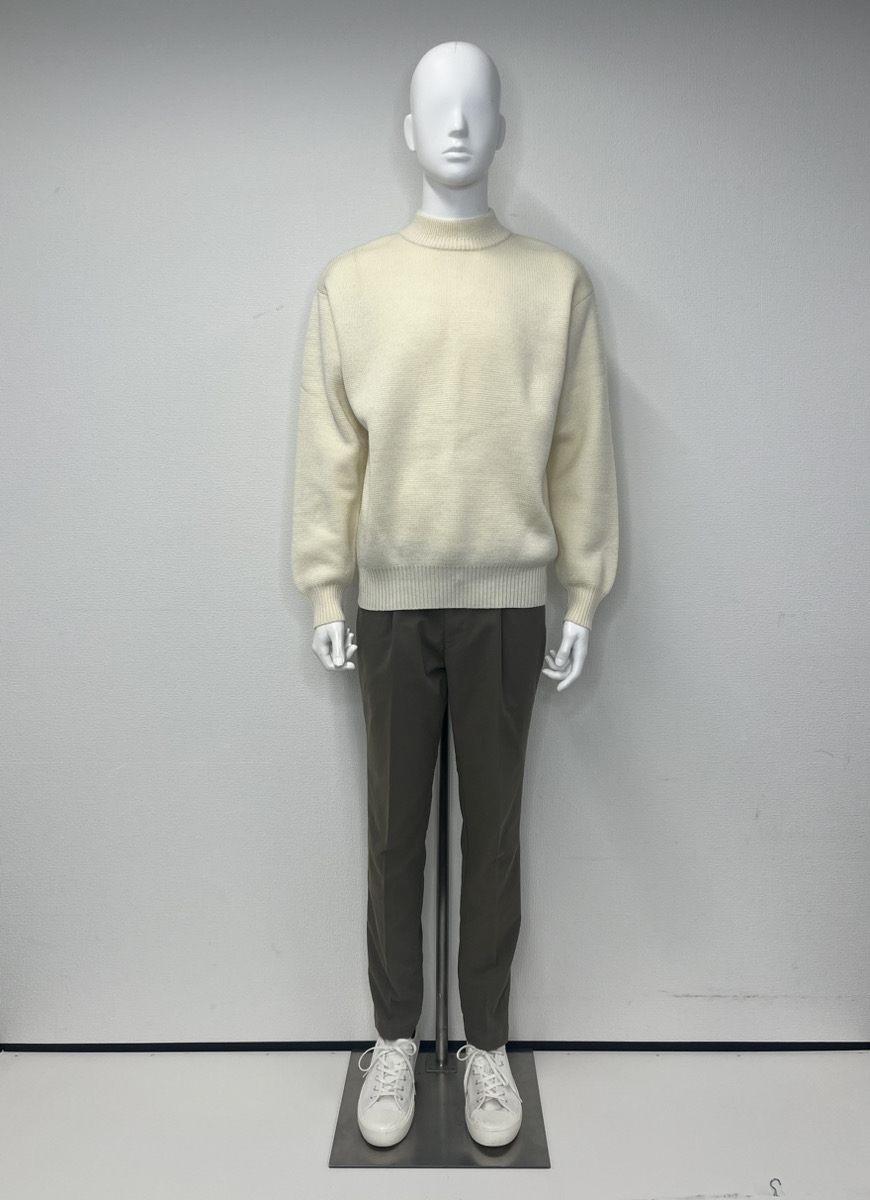 例えば、仕事でジャケットに合わせるなら、オフホワイトなど淡い色を選ぶと知的で洗練された印象に仕上がります。さらに、休日は仕事で使ったハイネックニットを別のスラックスと合わせるだけで、簡単に印象を変えつつ”きちんと見え”も作れます。