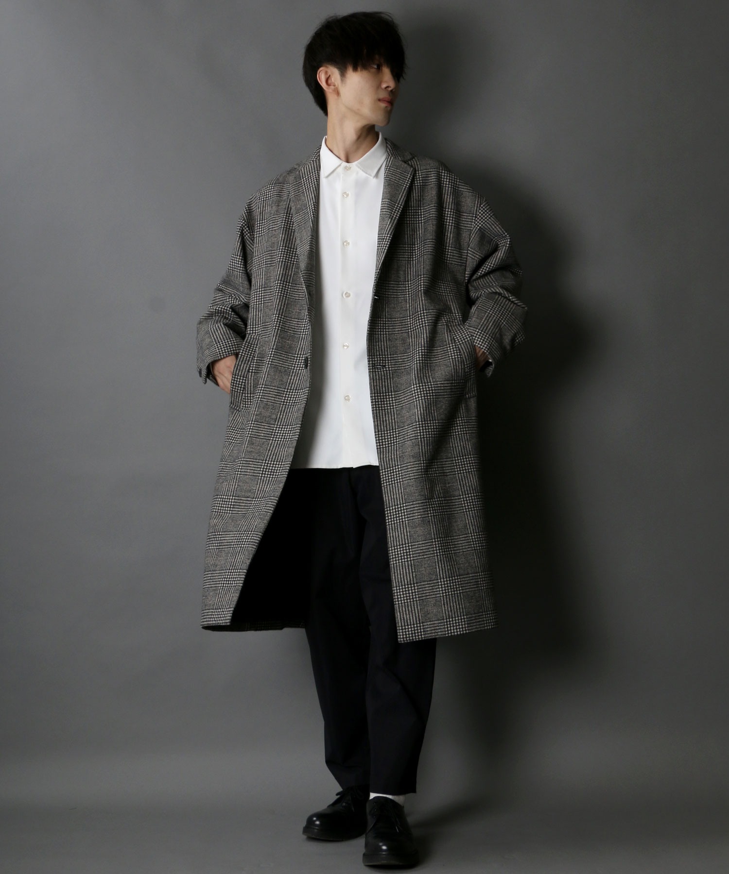 上品なチェスターコートに白シャツを合わせたキレイめなコーデです。
