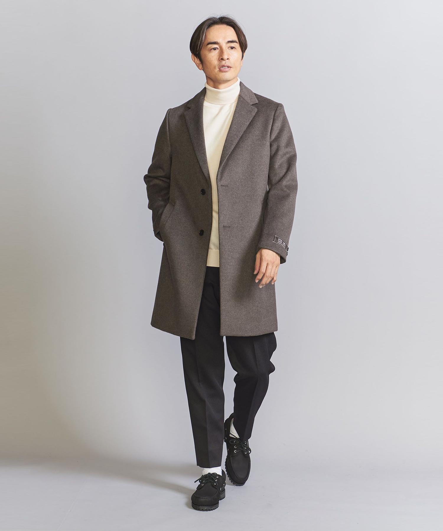 チェスターコートにタートルネックのニットを合わせた、見た目にも暖かさのある冬の定番コーデです。