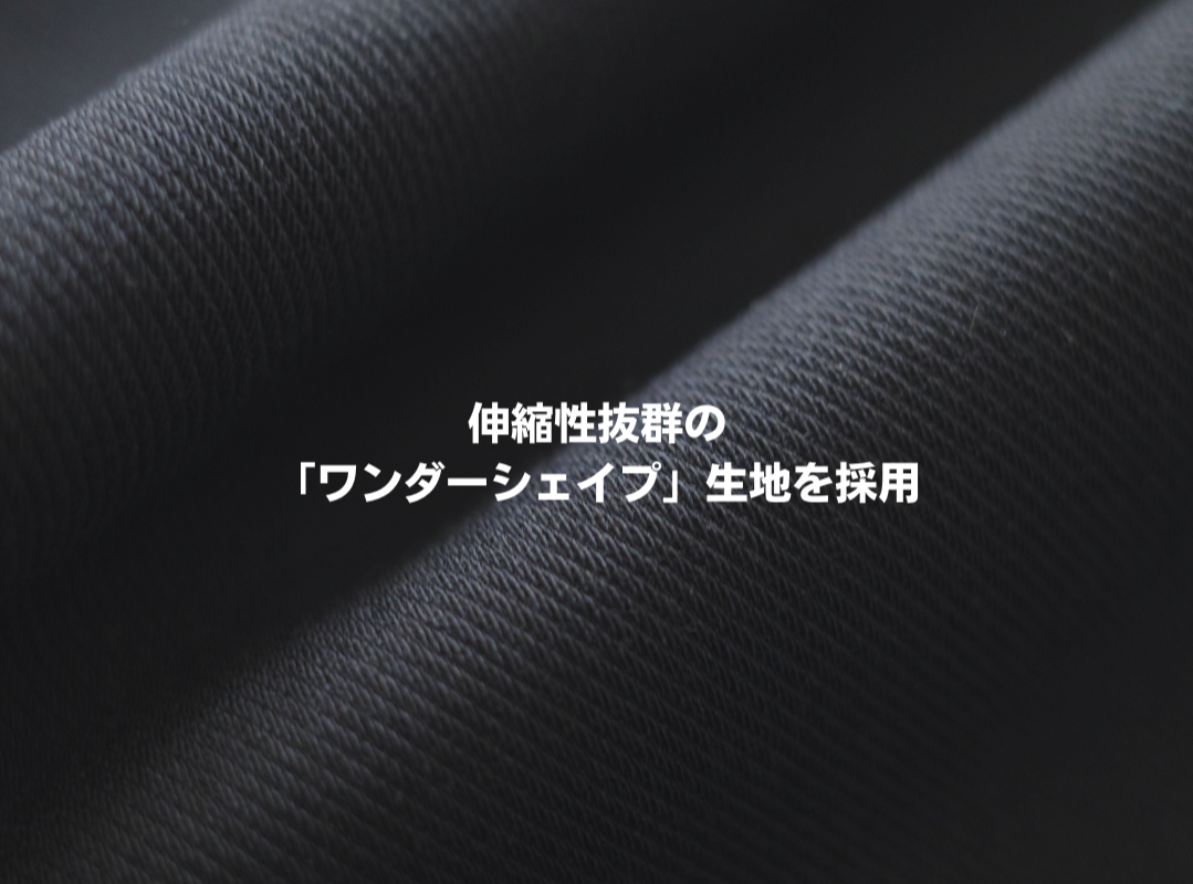 「ワンダーシェイプ」という360度どの方向にも伸縮する素材を使用しており、長時間の歩行や膝の曲げ伸ばしにもストレスなく対応します。