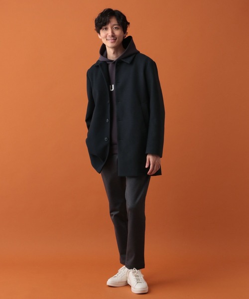 スラックスとパーカーの着こなしに、コートを羽織ったコーデです。スラックスとコートのきれいめな合わせに外しアイテムとしてスポーティーなパーカーを合わせることで、パーカーがもつ野暮ったさを解消することができます。全体をジャストサイズでまとめることで、大人なきれいめカジュアルコーデになります。恋人さんとのカフェデートなど、ラフすぎるのは避けたいときにおすすめの着こなしです!
