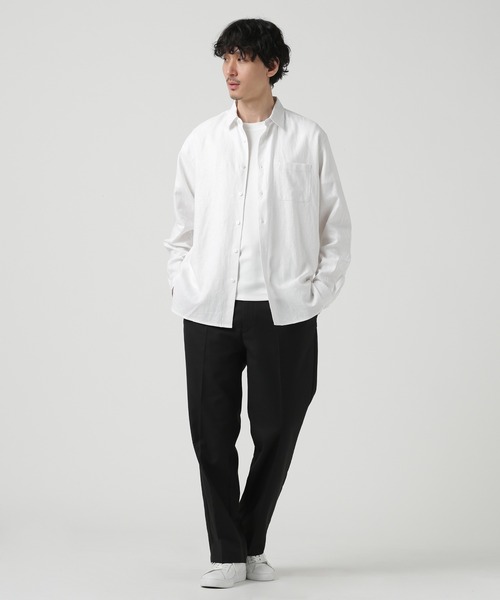 またボトムスはきれいめにするなら、足首に向かって細くなるシルエットのテーパードパンツが鉄板です。