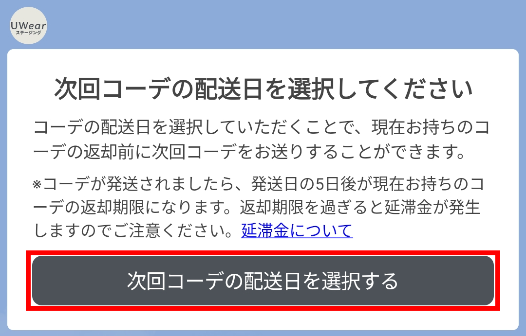 古いコーデの返却は、新しいコーデの発送日から5日以内にご返却下さい。