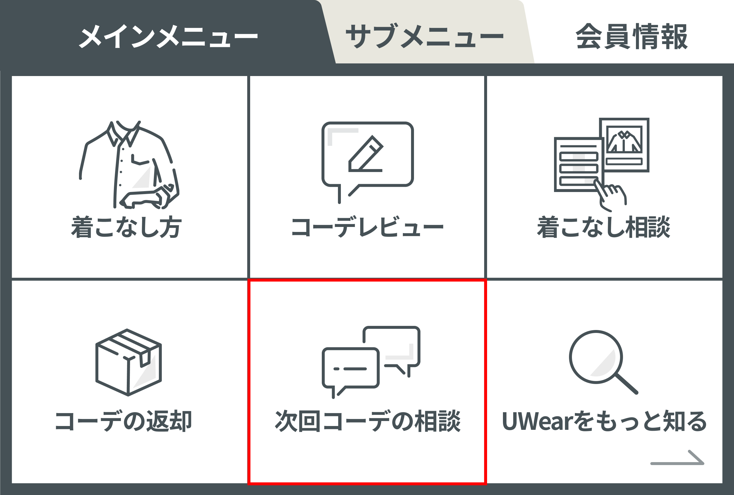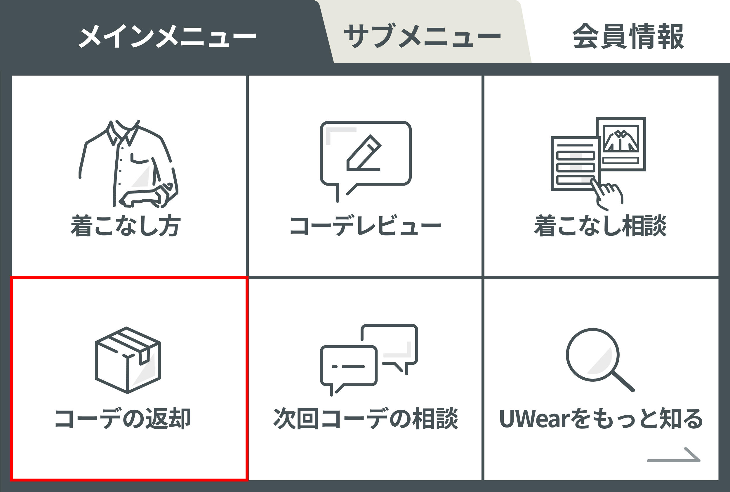 そこで以前までの仕組みを変更し、「次回コーデの相談」が完了したお客様には、次回コーデの配送が可能なタイミングで先に新しいコーデを発送し、お客様が新しいコーデの受け取り後に古いコーデを返却できる仕組みに変更しました。