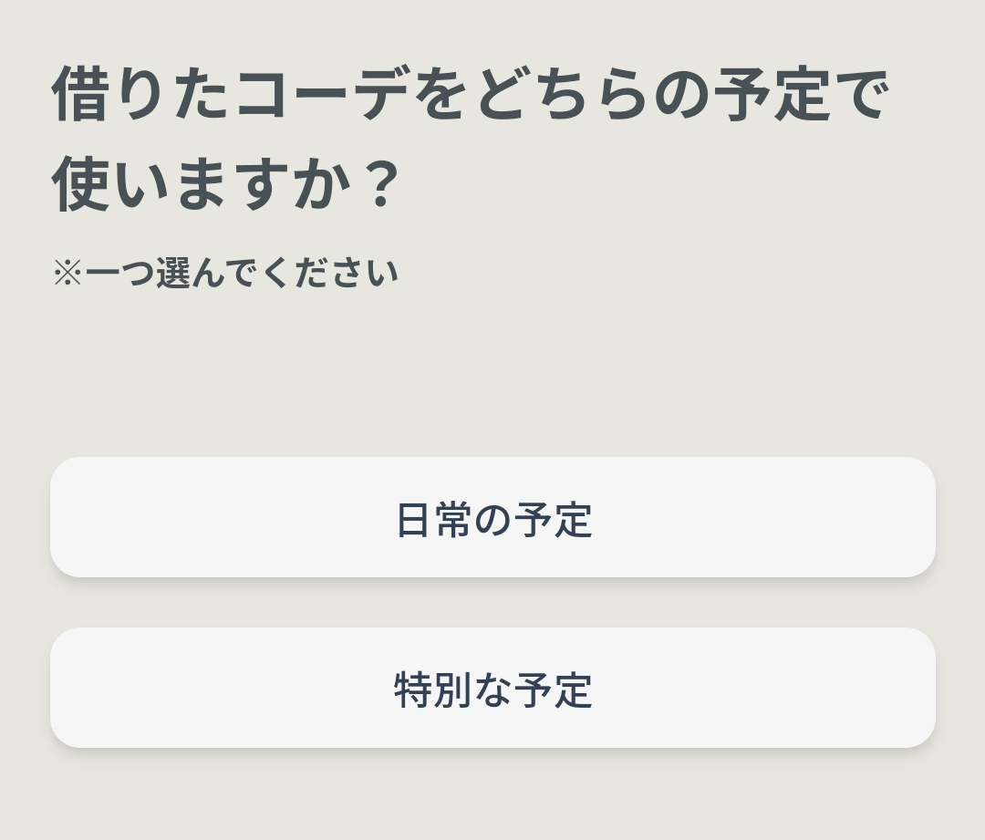 本日、単発でコーデがレンタルできる機能をリリースしました。