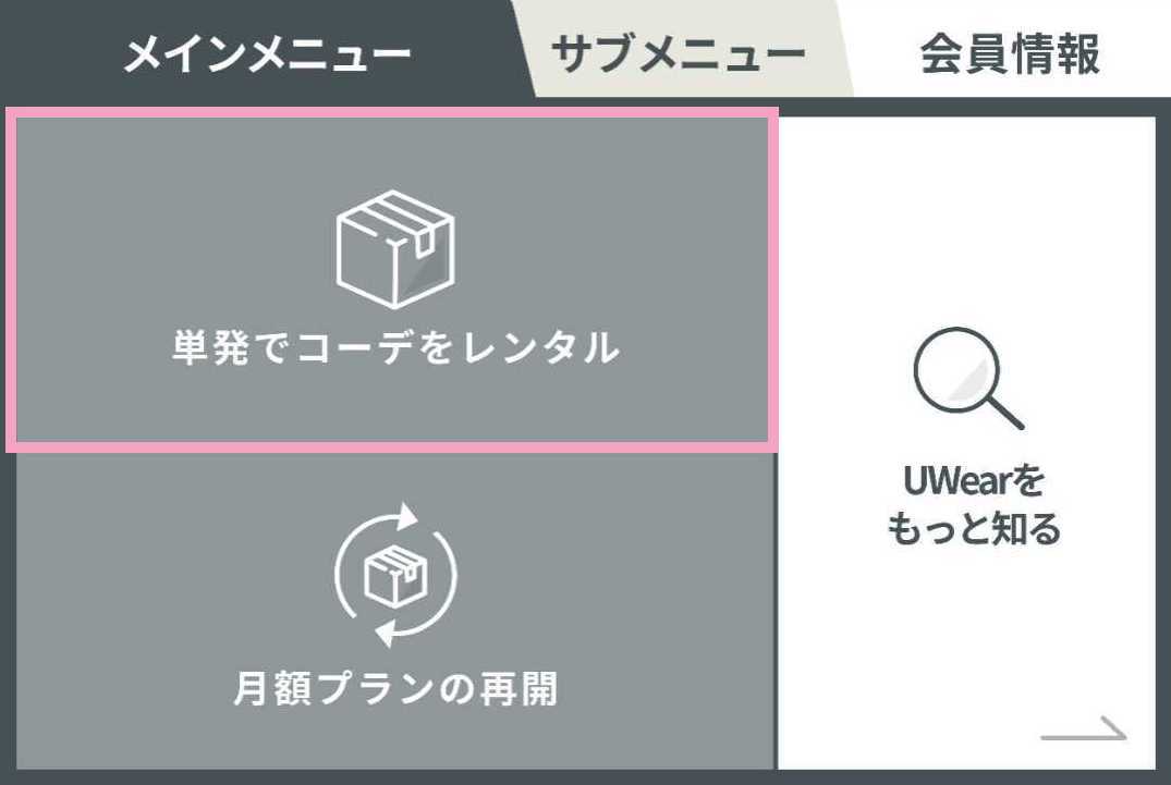 LINEのメニューにある「単発でコーデをレンタル」を選択してください。